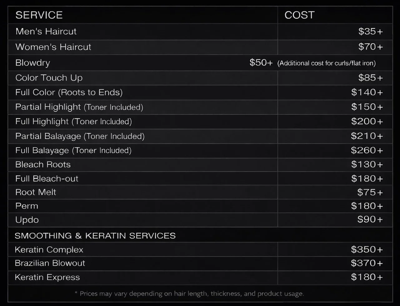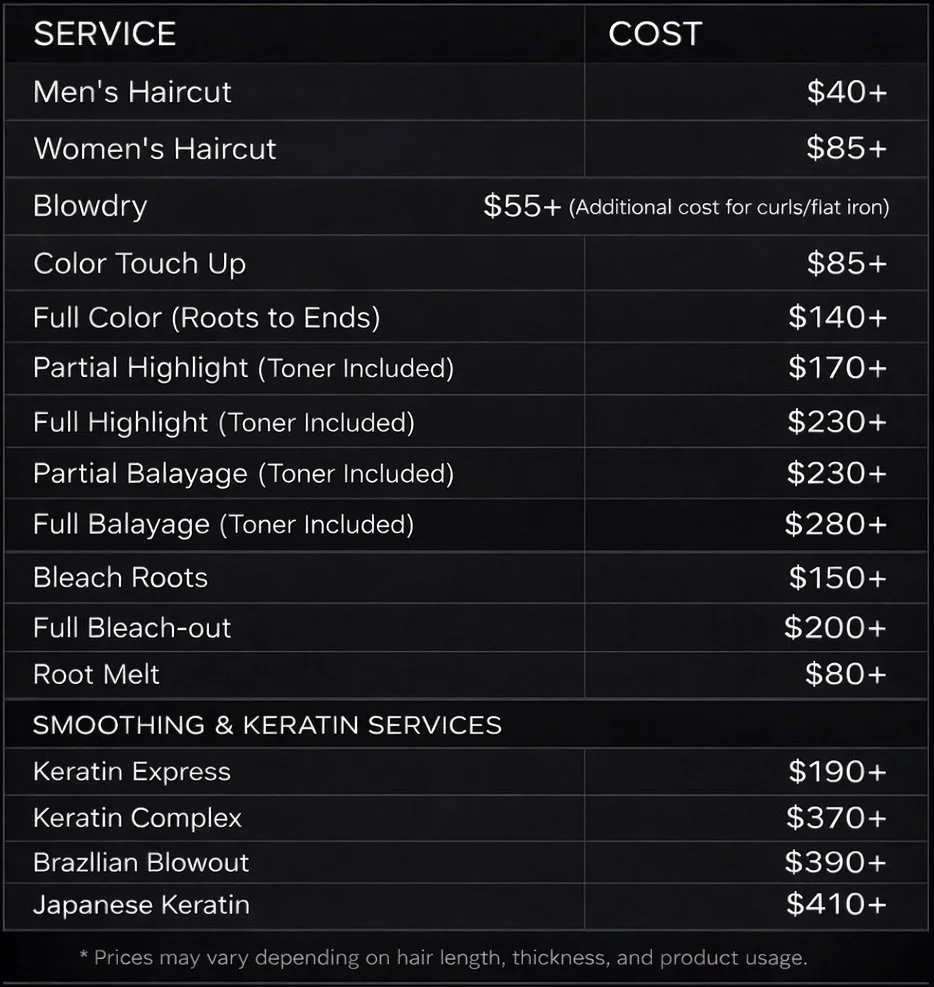 Alec specializes in balayage, highlights, ombré, keratin treatments, and both women’s and men’s haircuts. He stays up-to-date with the latest trends and techniques, ensuring every look is modern, flattering, and customized to each client’s unique style.
